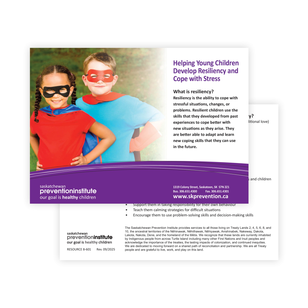 Stress is inevitable. Every child and adult will experience stress at some time in their lives. Written in plain language, this information card provides practical information for caregivers to help their young children develop resiliency – coping skills to handle stressful events.
