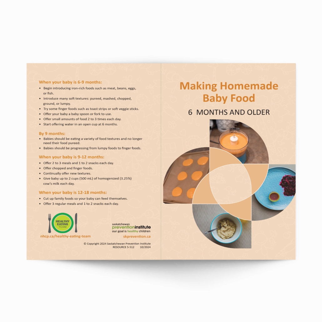 This brochure shares information about how to make, season, store, thaw, reheat, and serve homemade baby food.