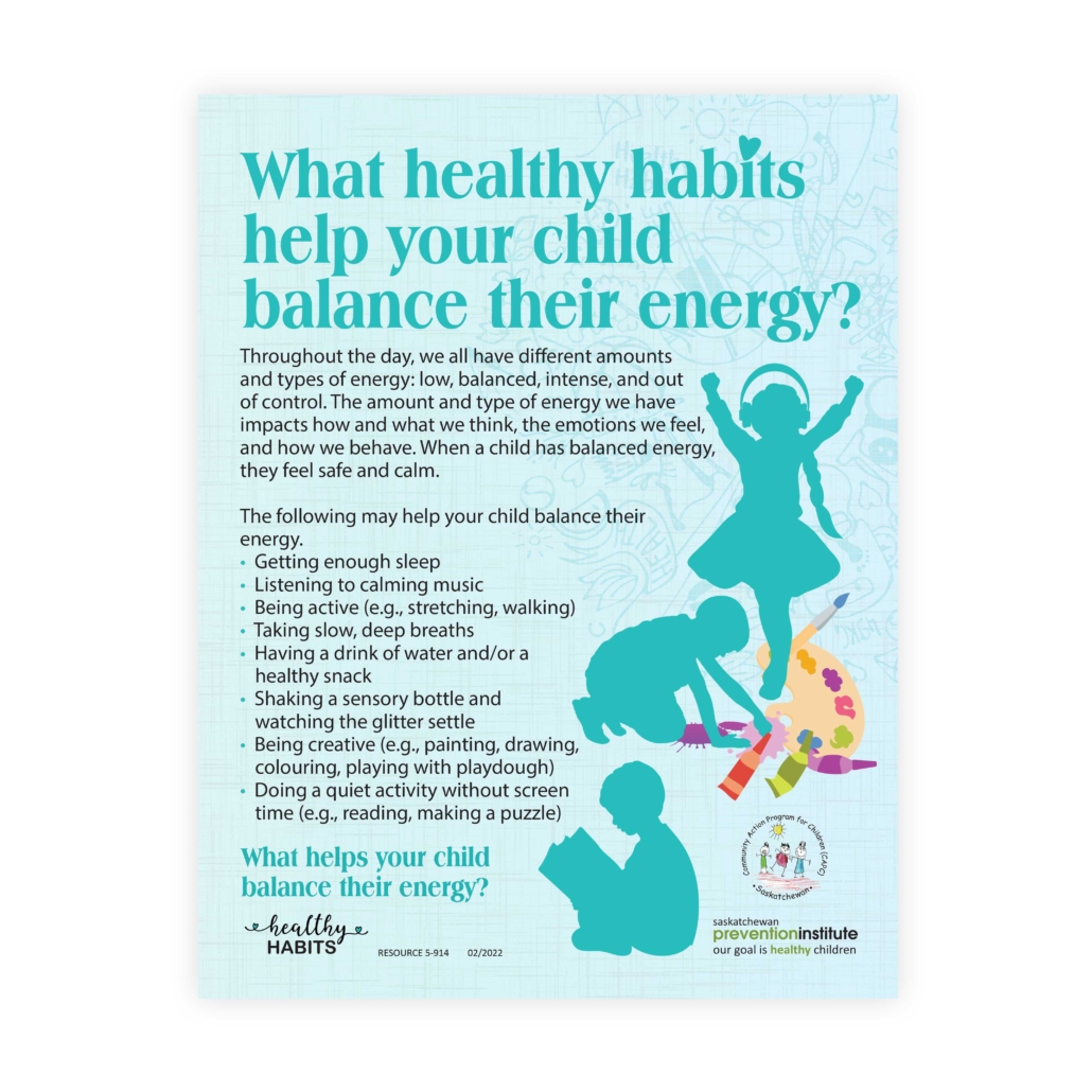 This poster shares information about the different states of energy we experience throughout the day (e.g., low, balanced, intense, out-of-control) and provides examples of how a child can balance their energy.